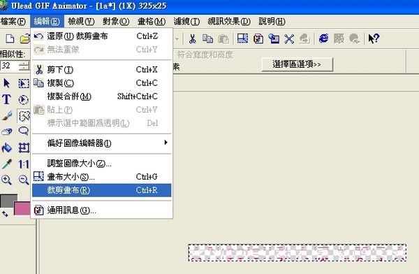 6.存檔前先用"裁剪畫布"的功能,把畫格修到跟文字一樣大小哦!!